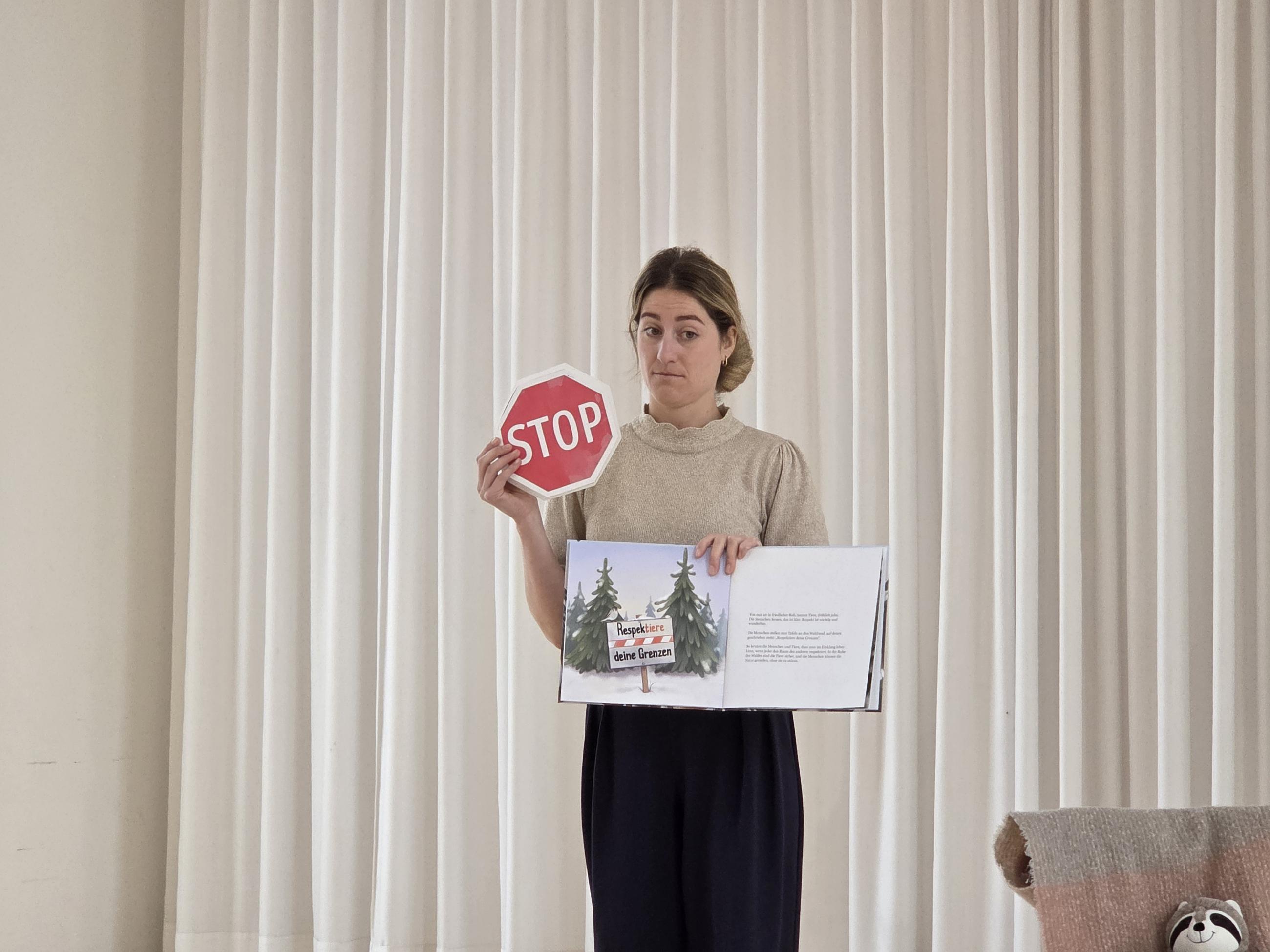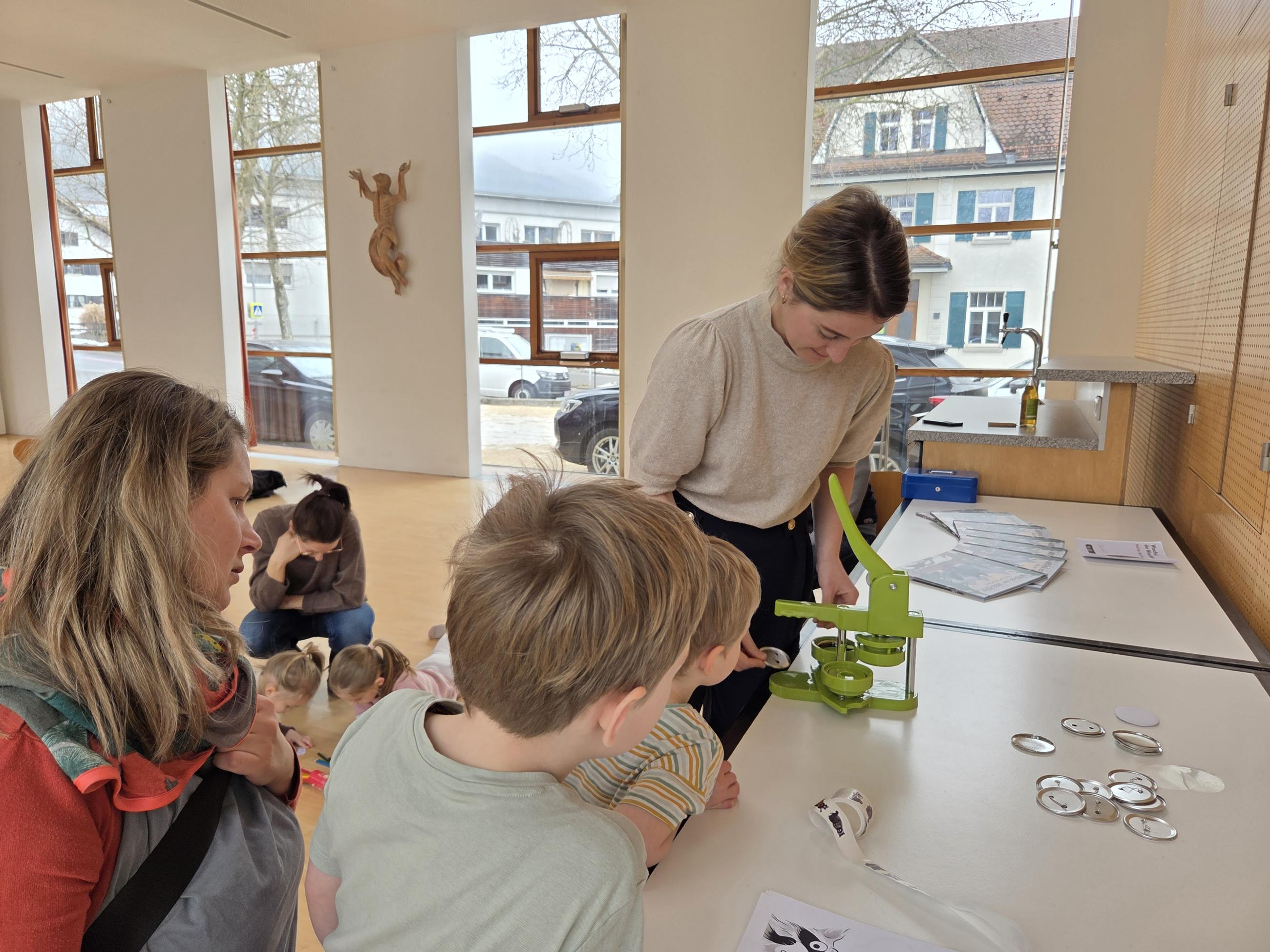 Bei der Familien-Mitmachlesung war Groß und Klein nicht nur von diesem mutigen „Feriengast“ und der Autorin begeistert, sondern auch von der Botschaft: Gilt es doch einen Weg zu finden, bei dem alle Platz haben - die Wildtiere in den Alpen ebenso wie die Menschen, die skifahren, biken und wandern möchten. Zum Glück konnte mit „Respektiere deine Grenze“ eine Lösung für alle gefunden werden. Mit den selbst bemalten Buttons werden die Kinder diese Botschaft sicherlich auch weitertragen – tatkräftig unterstützt von ihren Eltern. Fazit: Es war eine spannende, abwechslungsreiche und zum Nachdenken und Handeln anregende Lesung. Vielen Dank liebe Siri Fleisch!